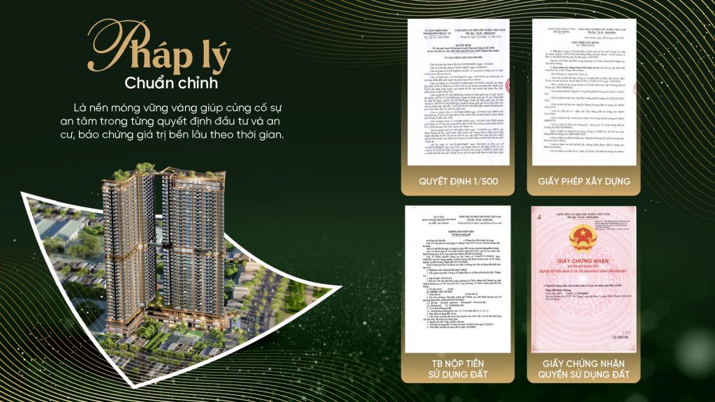 Pháp lý: Thông báo nộp tiền sử dụng đất – Giấy phép xây dựng, – Quy hoạch 1/500, – Quyết định chấp thuận chủ trương đầu tư